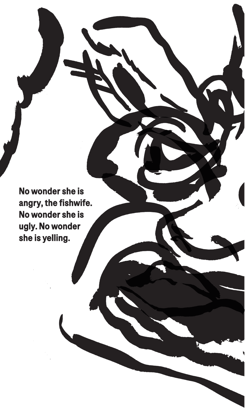 I am a fishwife. I am art history’s mad vixen. You think this is interesting? I’ll tell you what’s interesting. I am a screen for your projections. You want me like this. You don’t want me demure. You say you do, but you don’t. Demure is the white wall of education, and I am the institution’s lice.